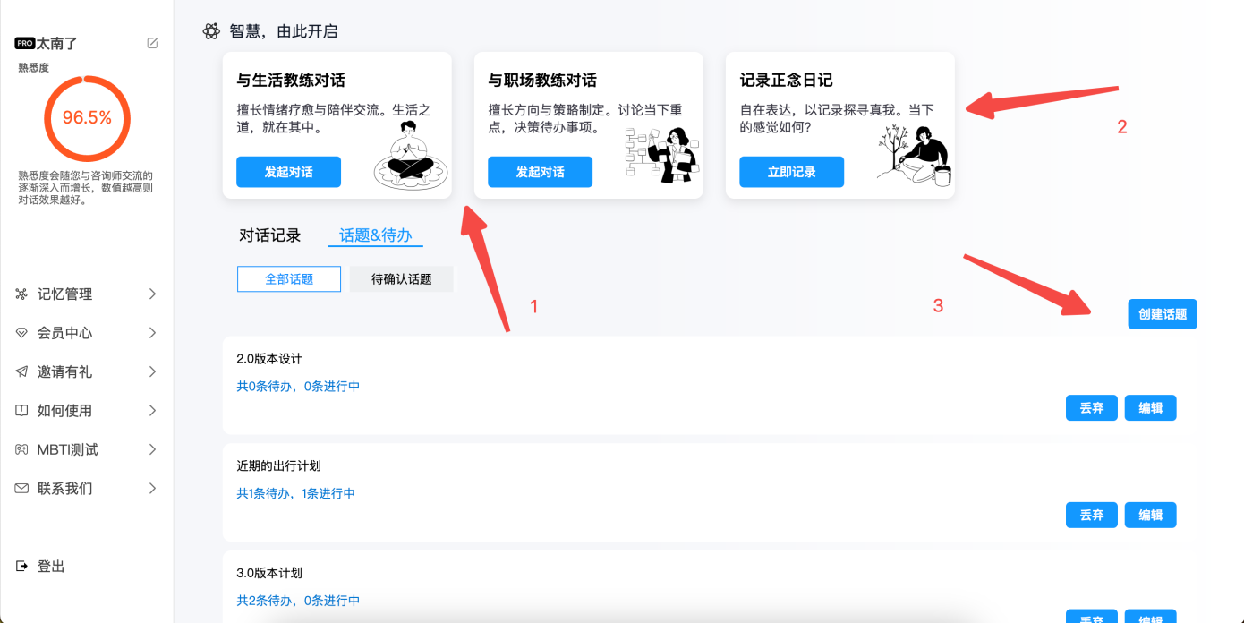以下方式亦会影响记忆系统,让AI更懂您: 1.与life coach对话,积累对话记录 2.记录所思所想 3.创建话题并与career coach讨论